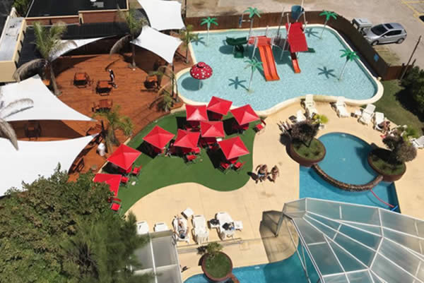 Exclusivos jacuzzis intercomunicados, con agua climatizada y ozonizada. lugar de esparcimiento para toda la familia.